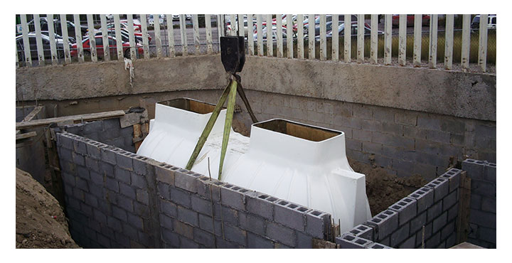 El tanque de fibra de vidrio reforzada (FRP) es fuerte, ligero, resistente a la corrosión y, si fuera necesario, fácilmente puede cambiarse a otro sitio.